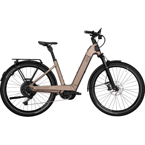 De e-trekkingfiets combineert geavanceerde technologie, hoge belastbaarheid en doordachte uitrusting – perfect voor lange tochten, dagelijks woon-werkverkeer en veeleisende recreatieve rijders. Hij wordt aangedreven door de bewezen Bosch Performance Line CX-motor, bekend om zijn krachtige ondersteuning en betrouwbaarheid – ideaal voor langere ritten en zware beklimmingen. Het systeem wordt ondersteund door een krachtige 800 Wh-accu die een bijzonder groot bereik mogelijk maakt, waardoor ook uitgebreide tochten zonder oplaadpauze mogelijk zijn. Nieuw in de uitrusting is de Shimano Cues Di2-derailleur, die zorgt voor nauwkeurige elektronische schakelingen en het rijcomfort aanzienlijk verhoogt. Samen met het robuuste frame is de e-bike ontworpen voor een toegestaan totaalgewicht van 180 kg – optimaal voor zwaardere rijders of extra bagage. Over bagage gesproken: de MonkeyLoad-drager met een draagvermogen van 27 kg biedt voldoende ruimte voor fietstassen of kinderzitjes en is dankzij het MonkeyLoad-systeem bijzonder eenvoudig in gebruik. Hydraulische schijfremmen zorgen voor veiligheid en betrouwbare vertraging bij alle weersomstandigheden. De SR Suntour-verende voorvork met 100 mm veerweg biedt veel rijcomfort, ook op oneffen paden. Een ander hoogtepunt is het frameontwerp in mat bruin goud, dat de fiets een elegante en sportieve uitstraling geeft. Bijzonder praktisch en stijlvol is het geïntegreerde, verlichte frontlogo, dat niet alleen een visueel hoogtepunt is, maar ook de zichtbaarheid verbetert. Dit wordt aangevuld met een geïntegreerd remlicht dat de veiligheid in het verkeer verder verhoogt. Het Bosch Kiox 500-display toont alle belangrijke rijgegevens overzichtelijk en modern vormgegeven. Voor extra diefstalbeveiliging is er een frameslot ingebouwd. Deze trekkingfiets is daarmee niet alleen technisch up-to-date, maar ook geschikt voor dagelijks gebruik, duurzaam en comfortabel.